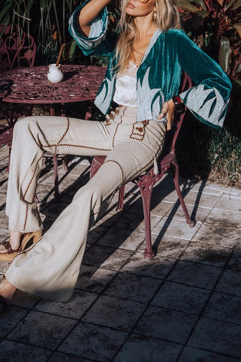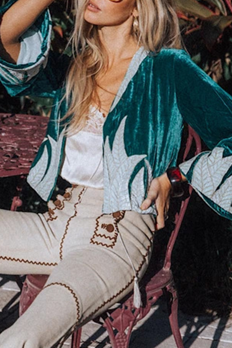 Casual Print Patchwork Cardigan Collar Outerwear